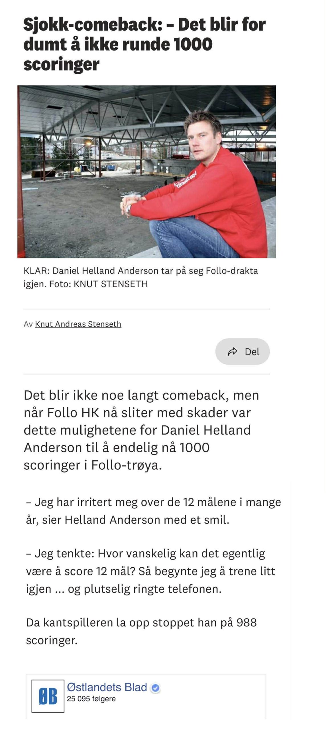 Med 988 mål for Follo HK er Helland Anderson allerede den mestscorende spillerne i klubbens historie. Likevel har tallet 1000 levd sitt eget liv i kulissene i mange år.